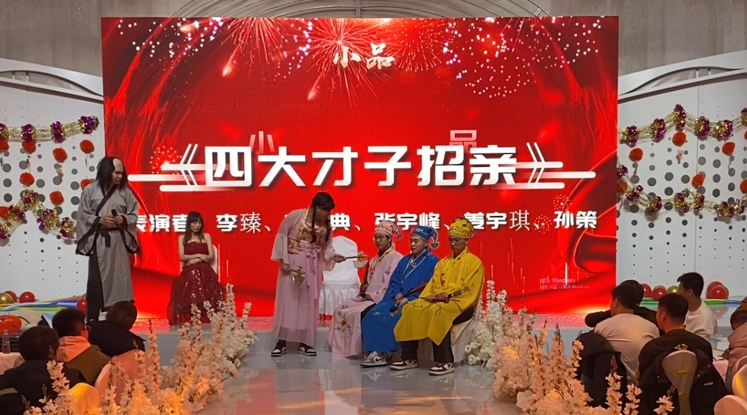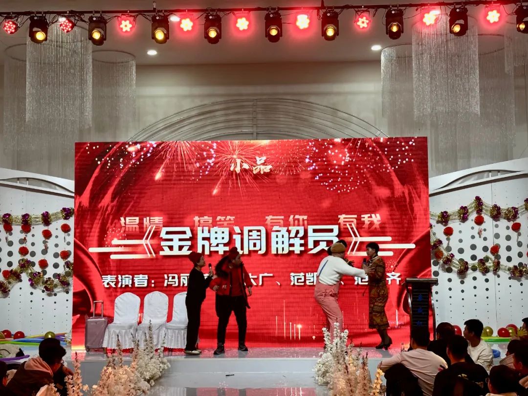 薈萃星光,觥籌熠熠,隨著頒獎典禮的結束,晚會在瀟灑的開場舞《驍》中正式拉開帷幕,隨后,公司各部門工作人員為大家帶來了文藝演出,歌曲演唱《笨小孩》、《海芋戀》、《著魔》,黑管獨奏《上海灘》,舞蹈表演《科目三》、《桃花朵朵開》,小品節目《四大才子招親》、《金牌調解員》,大合唱《壯志在我胸》,一段段精彩紛呈的節目收獲了臺下觀眾源源不斷的掌聲與歡呼聲,展現了泰威人蓬勃向上的青春風采。其中,小品《金牌調解員》的演員們,憑借著精湛、搞笑的演技,得到了全場觀眾們的認可,小品被評為全場最佳節目。